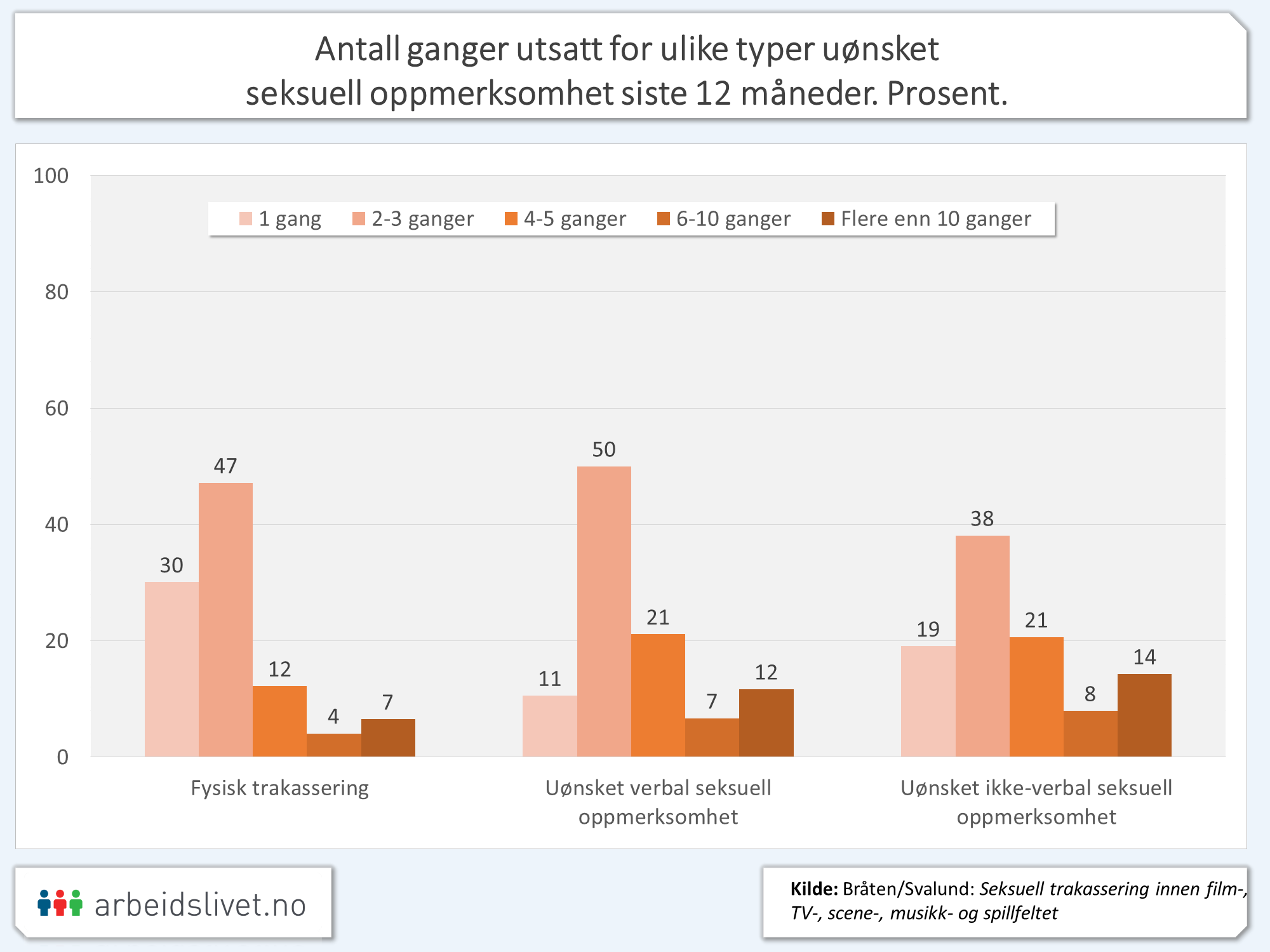 For dem som har opplevd seksuell trakassering har dessuten majoriteten opplevd flere hendelser: