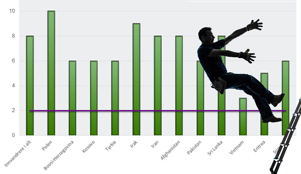 Statistisk Sentralbyrå har gransket hvordan innvandrere fra 12 land gjør det på det norske arbeidsmarkedet. Forskjellene er gjerne større mellom de ulike landene enn målt mot befolkningen som helhet – med noen vektige unntak.