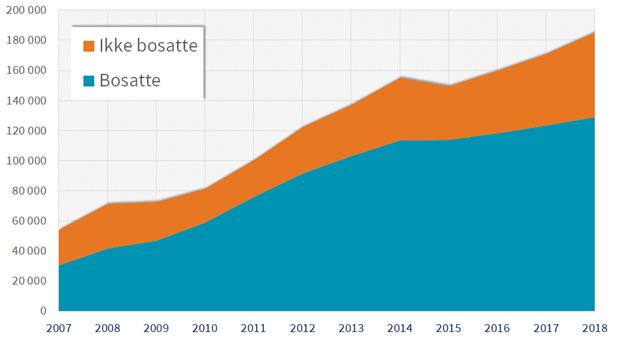 Blant disse var 130 000 bosatt og 55 000 personer ikke bosatt.