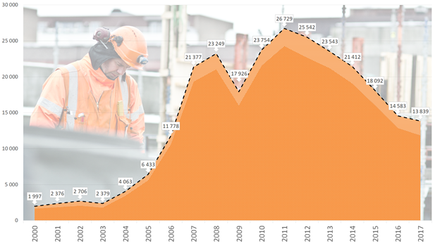 - Polen står for mer en halvparten av de sysselsatte fra Øst og sentral Europa.