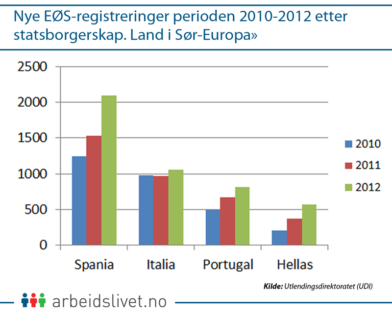 Selv om antallet registrerte borgere fra enkeltland økte sterkt i Norge fra 2010 til 2012, utgjør disse fremdeles en relativt liten andel av alle arbeidsinnvandrerne i Norge (se figurer).