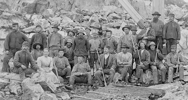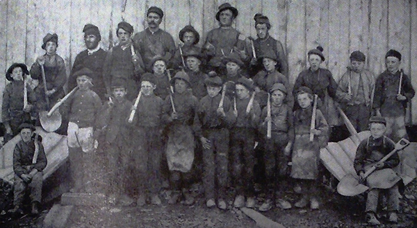 «VASKARRYSS» ved Christianus Sextus gruve på Røros i 1890-åra. Begrepet betegner unge gutter – i hovedsak barn – som sorterte malmen fra gråstein. Johan Falkberget nr. fire fra venstre bakerst. Kilde: Rørosmuseet