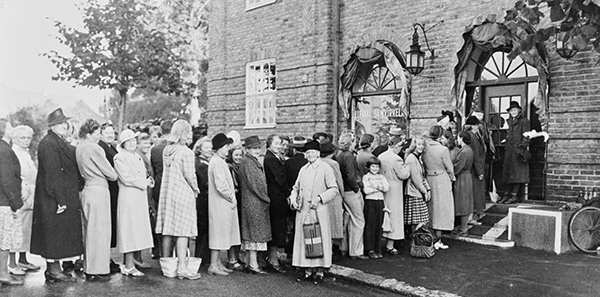 Lang kø for å få tak i fisk i Oslo sept. 1942. «Selv i fiskelandet Norge er det nå stor mangel på fisk til de norske forbrukere», heter det i den opprinnelige bildeteksten. Foto (beskåret): Ukjent / NTB scanpix / Riksarkivet