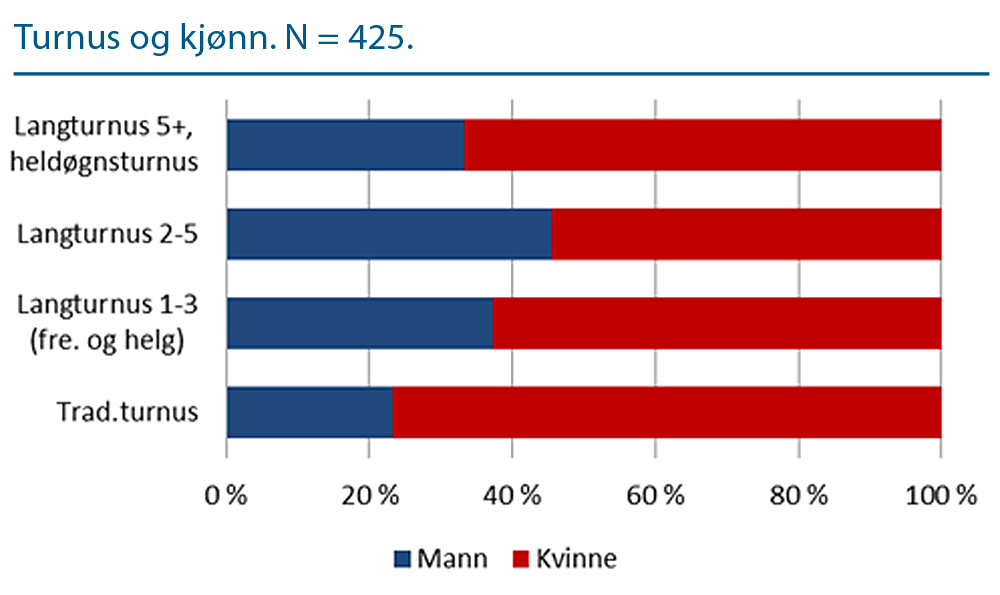 | FORDELING av kjønn, ulike typer turnus. (klikk for full størrelse) |