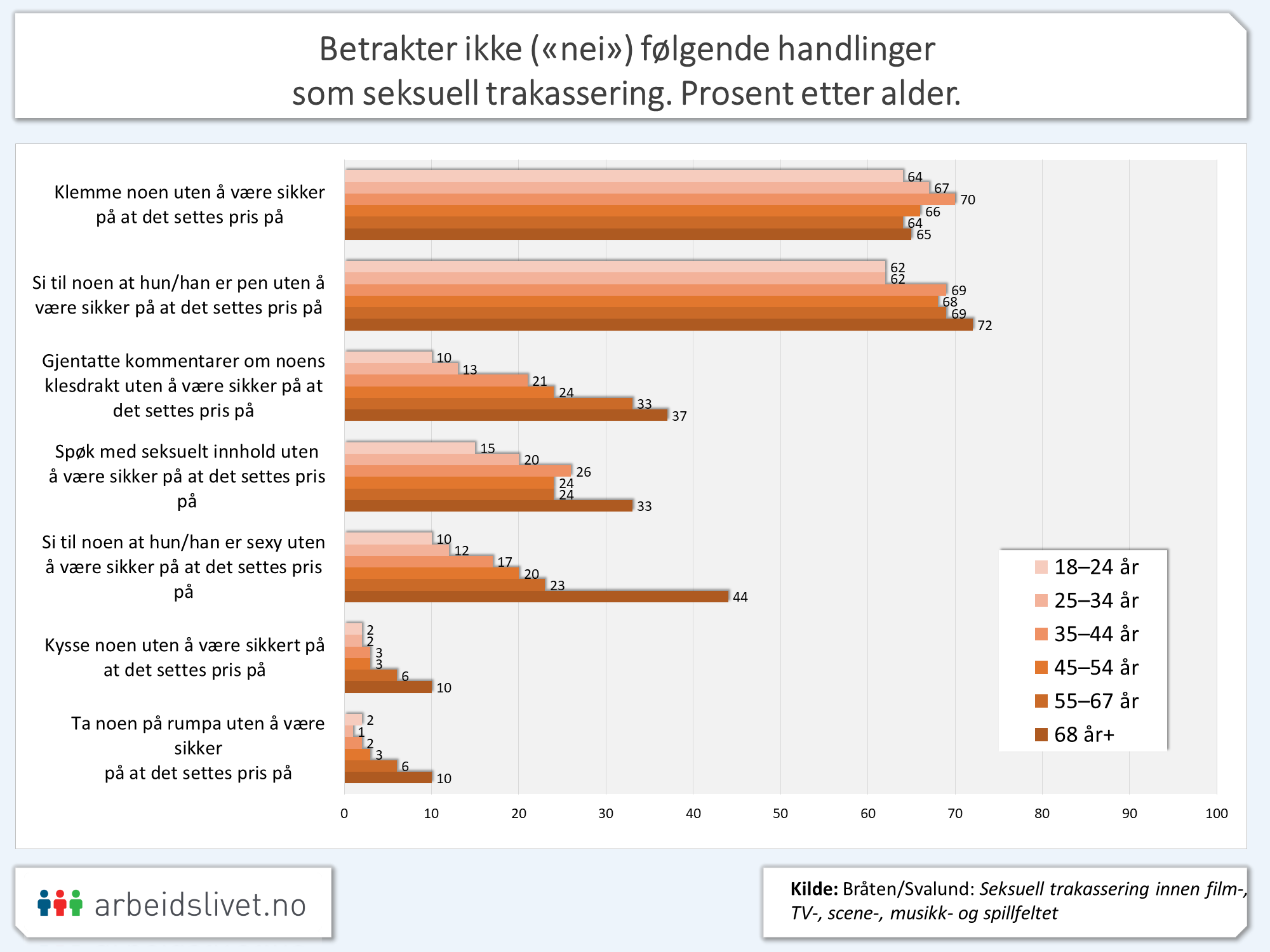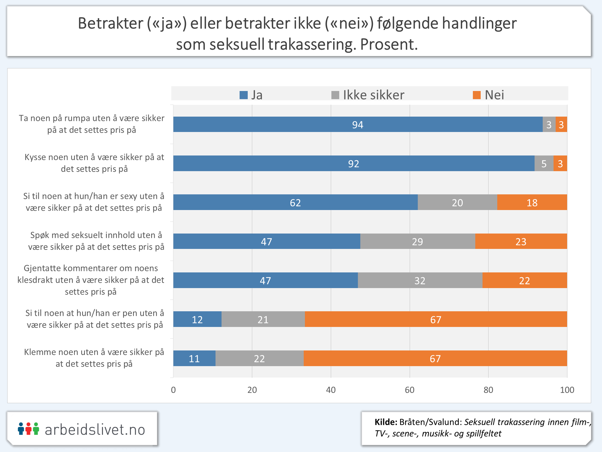 I spørreundersøkelsen ble også alle respondentene bedt om å vurdere hva de anser for å være seksuell trakassering eller ikke.