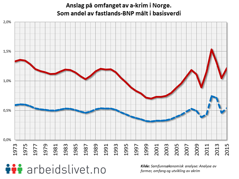 Ifølge forskernes gjennomgang, var problemet i ferd med å krympe utover 90-tallet. A-krim var vanskeligere å gjennomføre blant annet fordi andelen lønnstakere var høy og andelen selvstendig næringsdrivende lav.