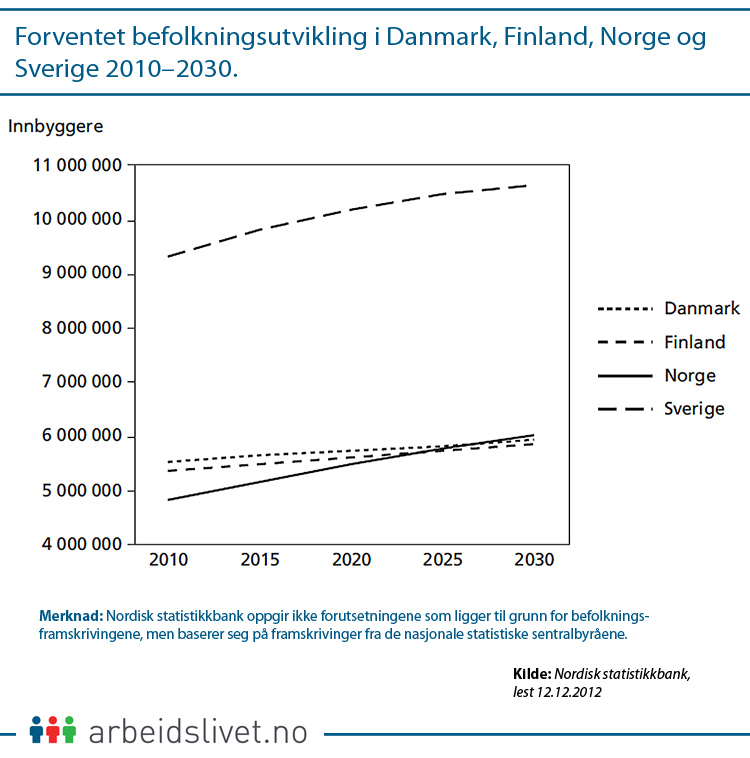 Økningen ligger an til å bli størst i Norge, slik at vårt innbyggertall vil kunne bli større enn både Danmarks og Finlands.