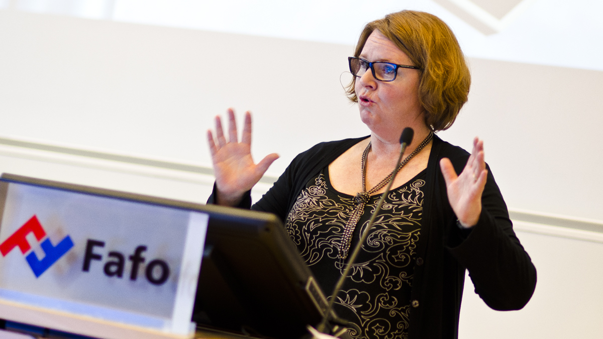 INSTITUTTSJEF ved Fafo, Tone Fløtten, rapportens hovedforfatter, la fram de mest sentrale funnene under et NordMod-møte i Oslo 14. april.