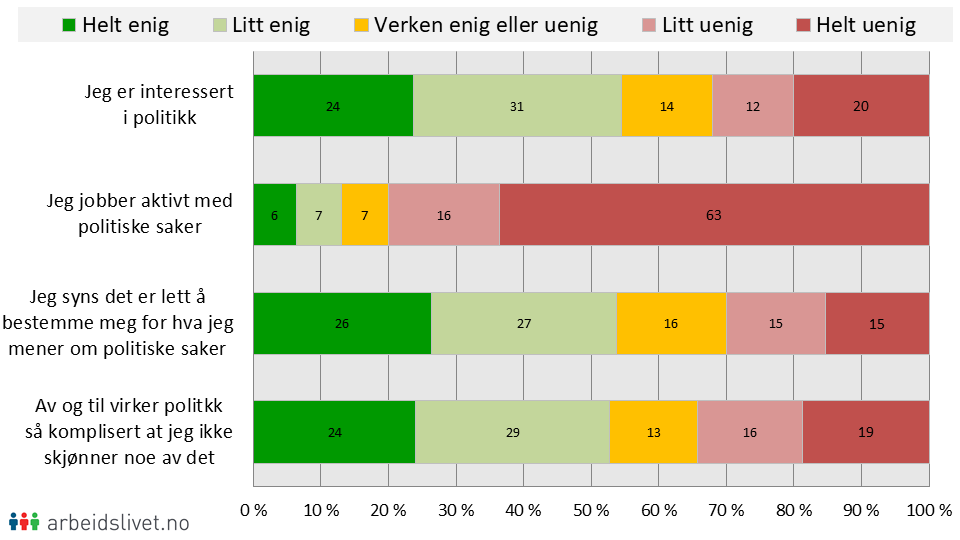 Svært få ungdommer er politisk aktive og mange har lav tillit til politikere. Rundt halvparten mener dessuten at politikk av og til er så komplisert at de ikke skjønner noe av det.