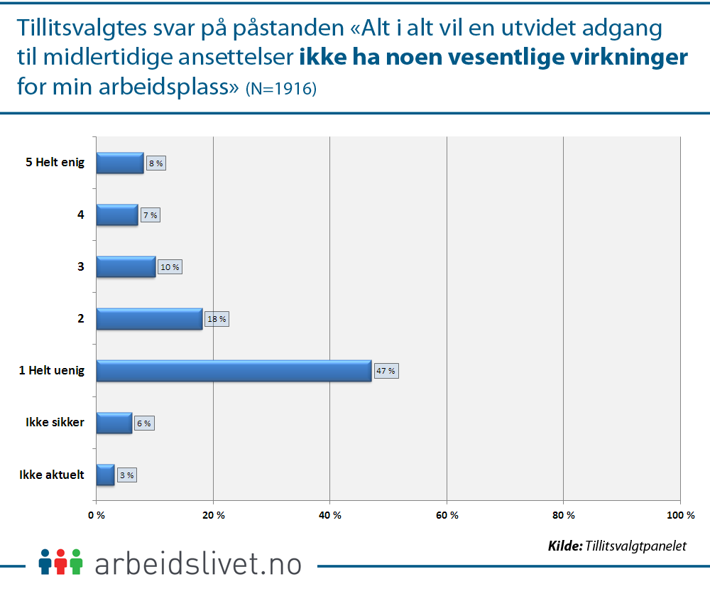 «Alt i alt vil en utvidet adgang til midlertidige ansettelser ikke ha noen vesentlige virkninger for min arbeidsplass»