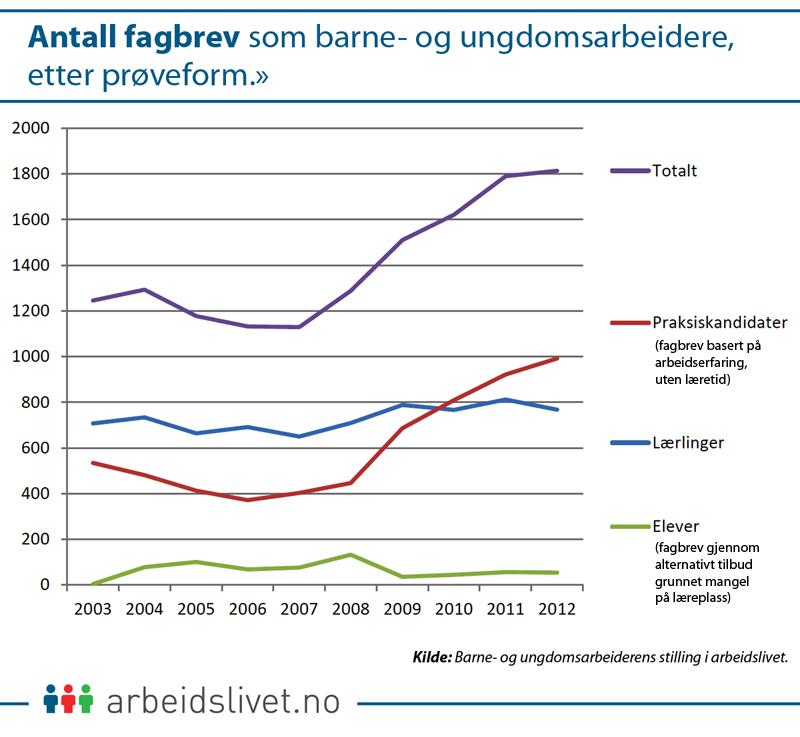 Barne- og ungdomsarbeiderfaget er et av de mest populære fagene innen videregående opplæring. Men frafallet på veien mot fagbrev er stort. Stadig færre velger lærling-veien. I stedet velges påbygging til studiekompetanse.